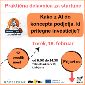 Do you have an innovative eco-friendly idea but don’t know where to start? As a startup entrepreneur, are you facing the challenge of presenting your concept clearly and convincingly? Take part in a practical training session on 18 February 2025 from 9 am to 3 pm at the Ljublana Technology Park! At the event, you will learn how Artificial Intelligence (AI) can accelerate the development of your business and help you create a compelling business model.