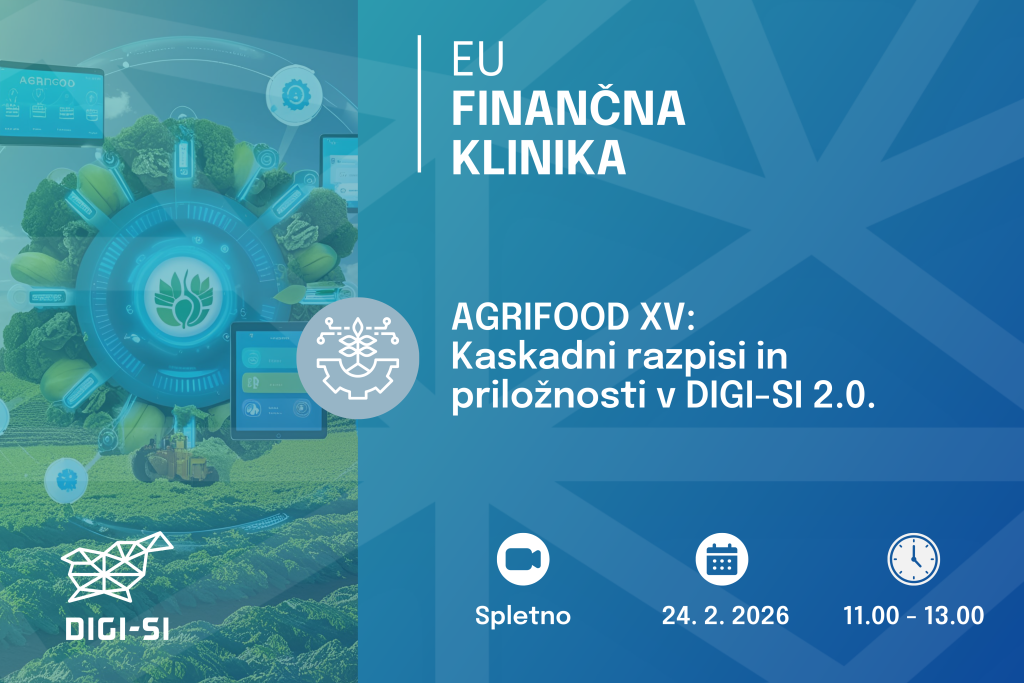 DIGI-SI EU AGRIFOOD Funding Clinics are focused on the agri-food sector, and are primarily looking for opportunities where digital transformation will be based on the integration of technologies such as AI, HPC, CyberSec, robotics, IOT, Big data, Blockchain and AR/VR.